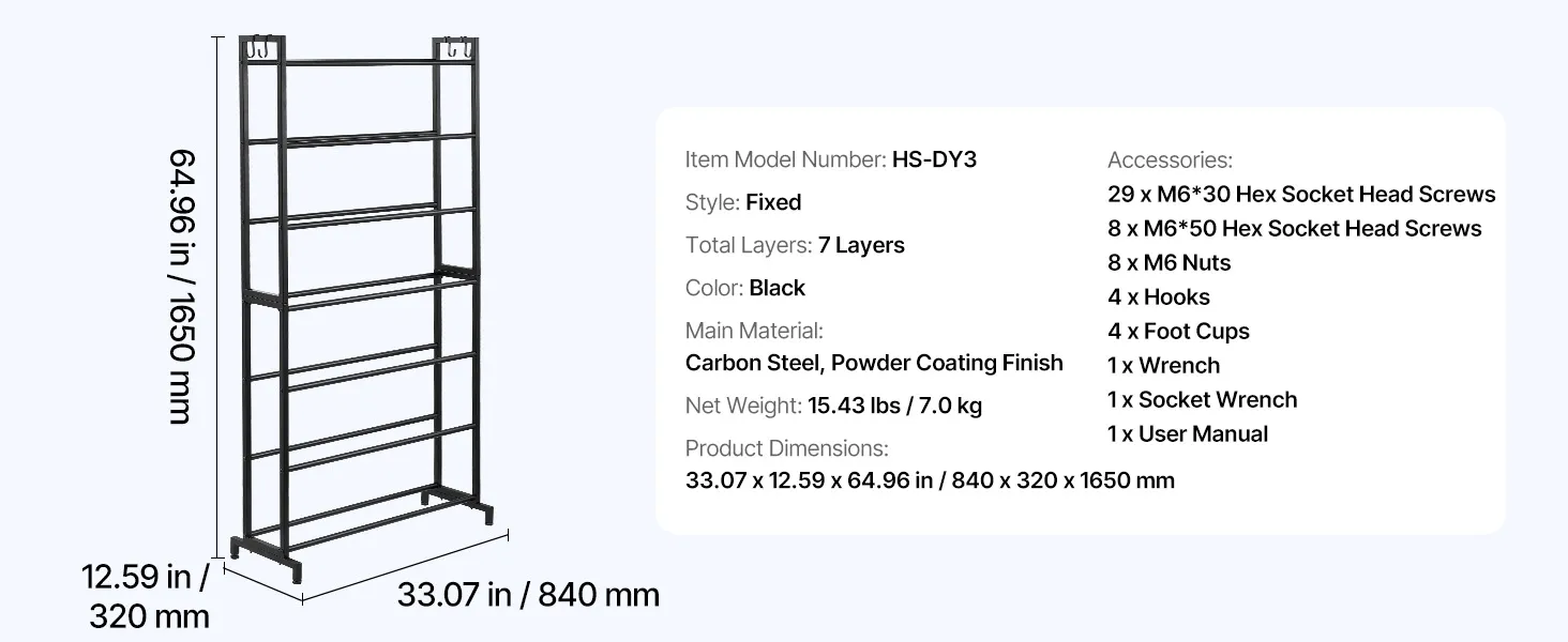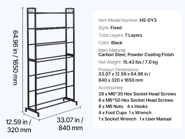 VEVOR Filament Lagerregal für 3D-Drucker, 7 Ebenen, Filamentspulenhalter, 840 x 320 x 1650 mm, Tragkraft 54,4 kg pro Ebene, 3D-Druckerzubehör für 3D-Druckstudio, Werkstatt, Schwarz