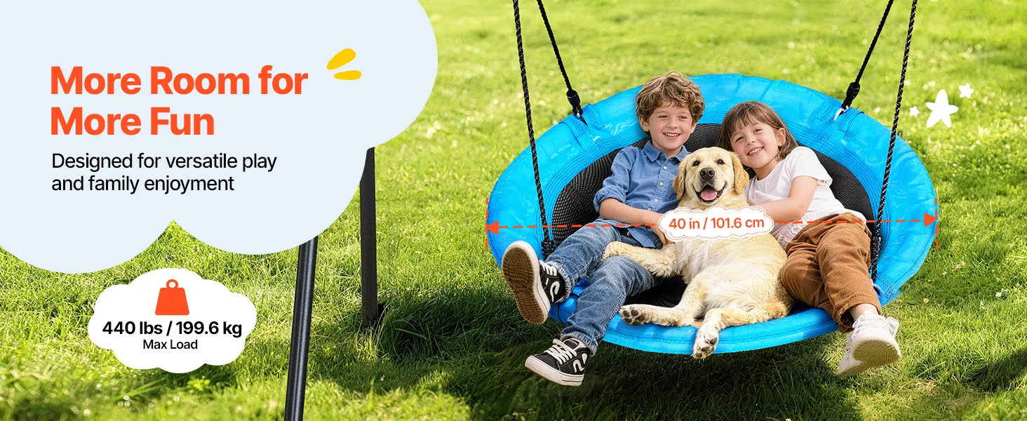 Breiter Schaukelsitz: Diese Tellerschaukel mit Gestell bietet mit ihrem runden Sitzplatz (40 Zoll / 101,6 cm, blau & schwarz) viel Platz zum Sitzen und Liegen. Das großzügige Design erhöht den Komfort beim Spielen und eignet sich ideal für Kinderaktivitäten im Freien