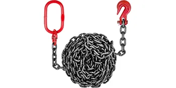 Dieser Kettenschlingen mit einem Bein besteht aus einer Kette aus G80 Mn-Stahl und einem Haken aus legiertem Stahl mit Pulverbeschichtung, der sich bei Belastung nicht ausdehnt. Es ist verschleiß- und temperaturbeständig, um eine lange Lebensdauer zu gewährleisten. Dies ist ein nützliches Werkzeug zur Verbesserung der Arbeitseffizienz.