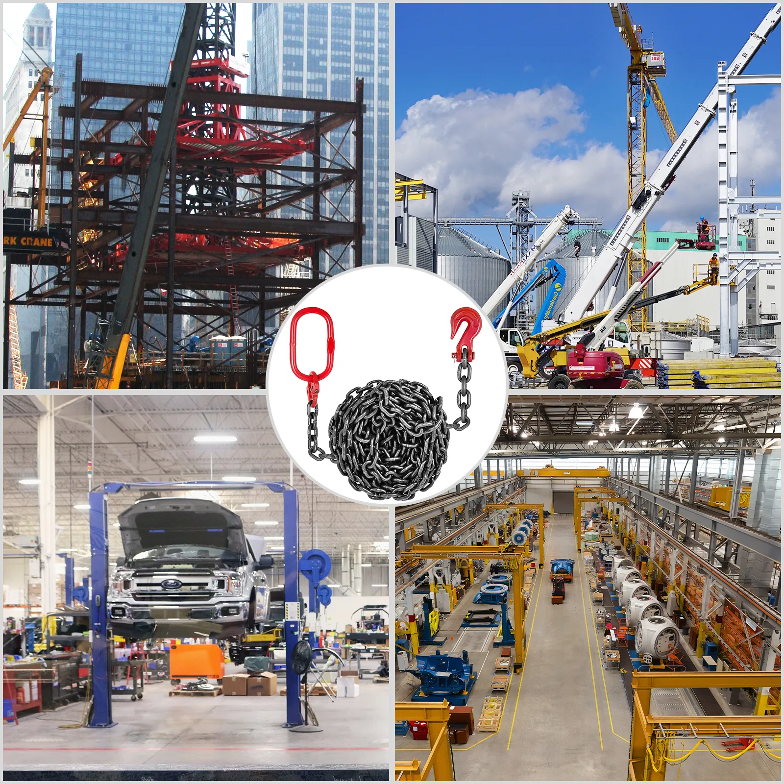 【BREITE ANWENDUNG】 - Es eignet sich perfekt für verschiedene Hebe- und Umzugsaktivitäten in Fabriken, Baustellen, Bergbau, Häfen, Gebäuden usw. Die schwere Kettenschlinge ist für das Abschleppen und Handling von Ladungssicherheit ausgelegt.