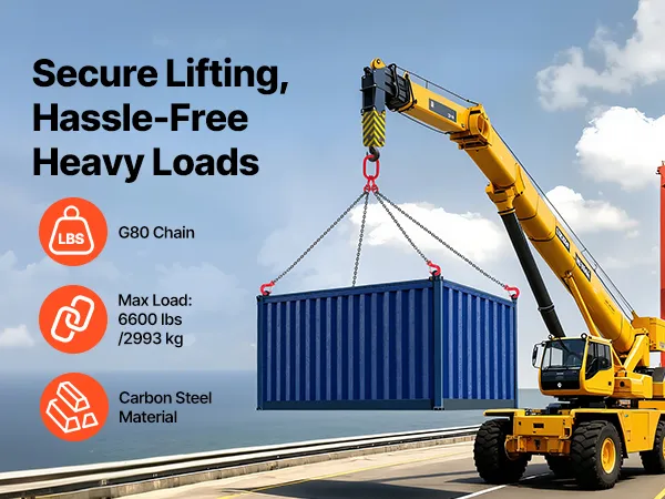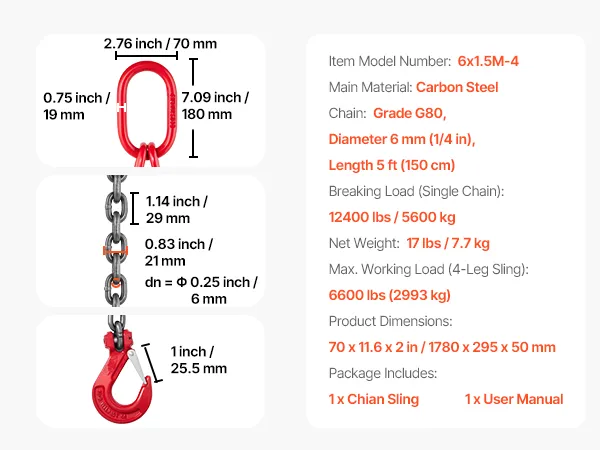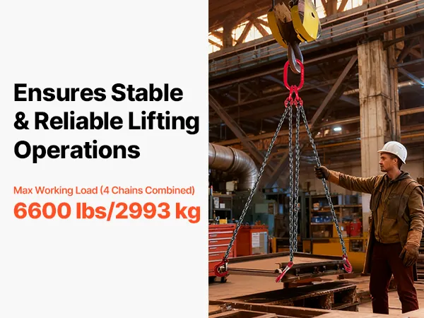 2993 kg Hohe Tragfähigkeit: Mit einer maximalen Arbeitslast von 2993 kg bietet diese Hochleistungs-Kettengehänge zuverlässige Hubkraft für Industrie- und Bauaufgaben