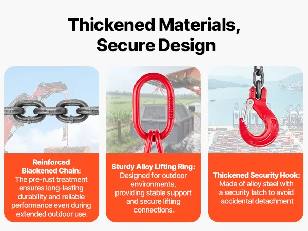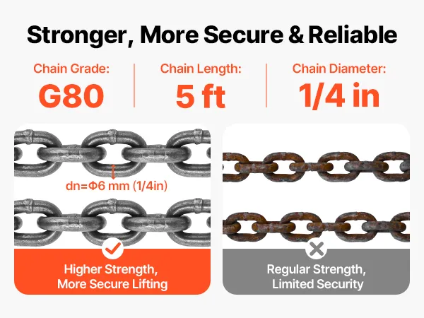 Langlebige und rostfreie Beschichtung: Diese Forstkette zum Anheben von Motoren besteht aus hochfestem Kohlenstoffstahl mit einer rostbeständigen Beschichtung und ist so konstruiert, dass sie rauen Arbeitsumgebungen und längerem Gebrauch standhält.