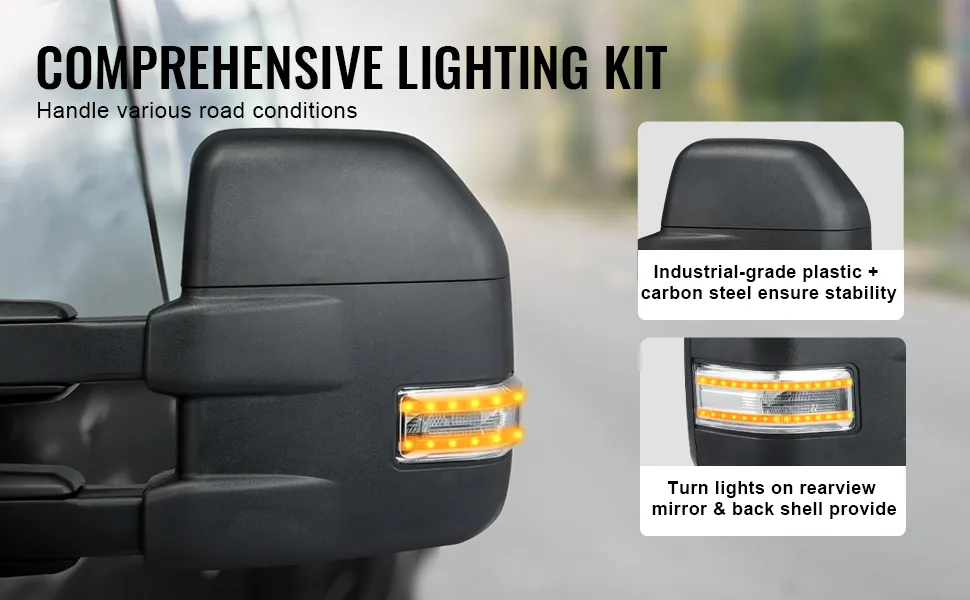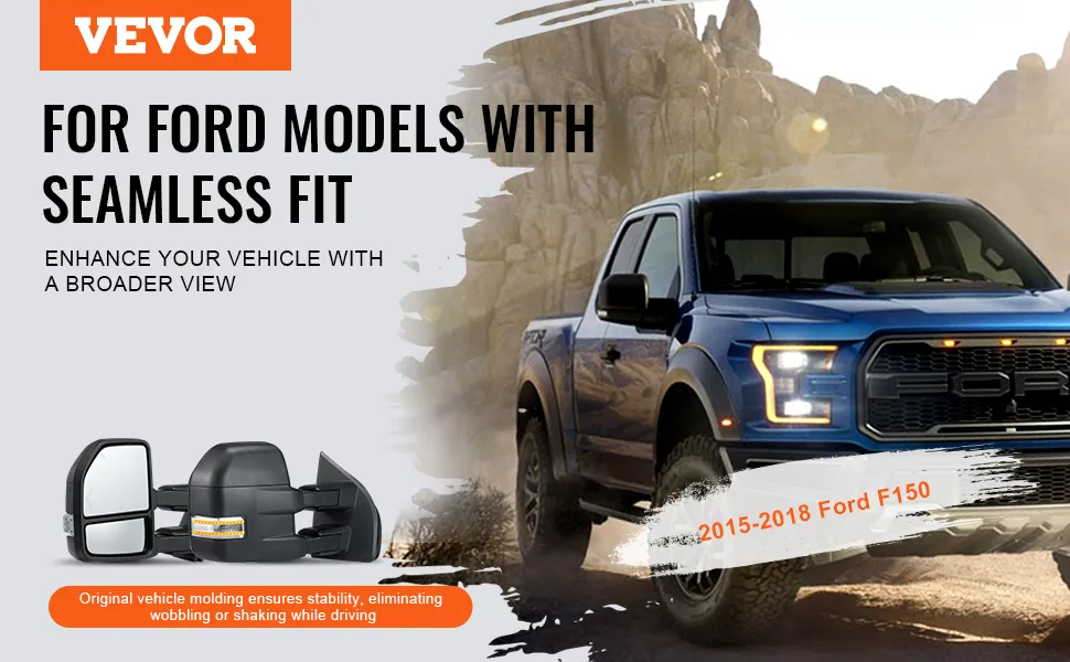 Die VEVOR-Abschleppspiegel verbessern nicht nur die Funktionalität, sondern auch das Aussehen Ihres Fahrzeugs. Sie haben ein schlankes und modernes Design, das die Ästhetik des Ford F150 ergänzt. Die schwarze Oberfläche verleiht ein gehobenes Aussehen und Eleganz. Diese Spiegel lassen Ihren Truck stilvoller und moderner aussehen. Sie sind sowohl praktisch als auch optisch ansprechend. Dies stellt sicher, dass Ihr Auto ansprechend aussieht und gleichzeitig hervorragende Abschleppfähigkeiten bietet. Das stilvolle Design macht diese Spiegel unglaublich nützlich für Ihr Ford F150-Upgrade.