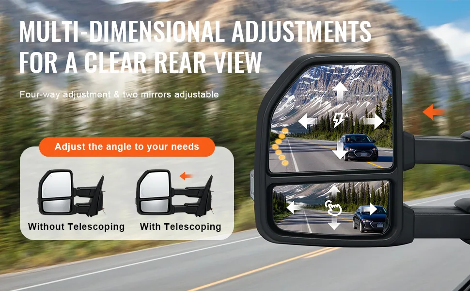 Die VEVOR-Abschleppspiegel sind manuell teleskopierbar. So können Sie die Spiegel nach Bedarf ausfahren oder einfahren. Das ist praktisch, wenn Sie in engen Räumen parken oder wenn Sie nicht abschleppen. Außerdem hilft es, Schäden an den Reflexionen zu vermeiden. Durch das manuelle Teleskopieren haben Sie die volle Kontrolle über die Position des Reflektors. Sie können diese Flexibilität in verschiedenen Fahrsituationen nutzen. Darüber hinaus können Sie durch ihre Vielseitigkeit verschiedene Abschleppanforderungen erfüllen. Die manuelle Bedienung ist reibungslos und erfordert nur minimalen Kraftaufwand.