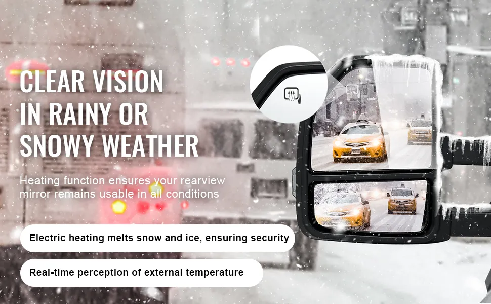 Diese Funktion ist in den Wintermonaten unverzichtbar. Sie entfernt schnell Beschlag und Frost von der Spiegeloberfläche und sorgt so für eine klare Sicht auf die Straße. Dies erhöht die Sicherheit, da sichergestellt wird, dass Sie bei Verwendung der beheizten Spiegel immer eine klare Sicht haben. Das Glas verhindert auch Eisbildung, die Ihre Sicht beeinträchtigen kann. Sicherheit ist wichtig für sicheres Fahren, insbesondere beim Abschleppen. Die Heizfunktion arbeitet jedoch effizient, sodass dieser Spiegel für kaltes Klima geeignet ist.