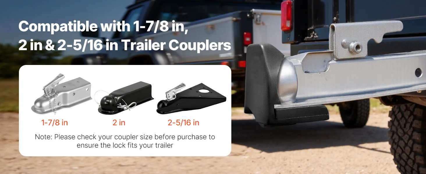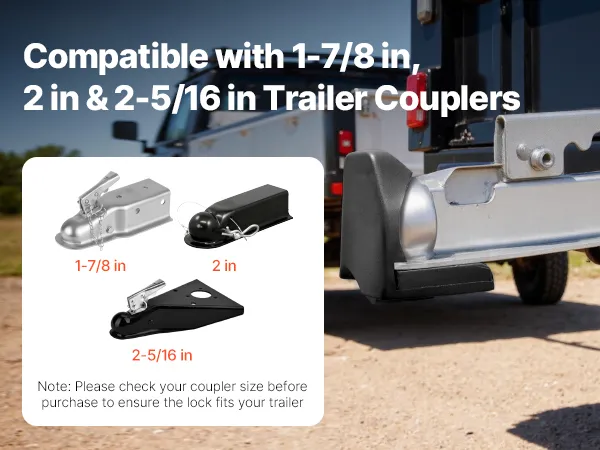 Unser Anhängerkupplungsschloss ist mit Anhängerkupplungen der Größen 1-7/8 Zoll, 2 Zoll und 2-5/16 Zoll kompatibel und bietet somit vielfältige Anpassungsmöglichkeiten. Bitte prüfen Sie vor dem Kauf die Größe Ihrer Kupplung, um sicherzustellen, dass das Schloss zu Ihrem Anhänger passt.