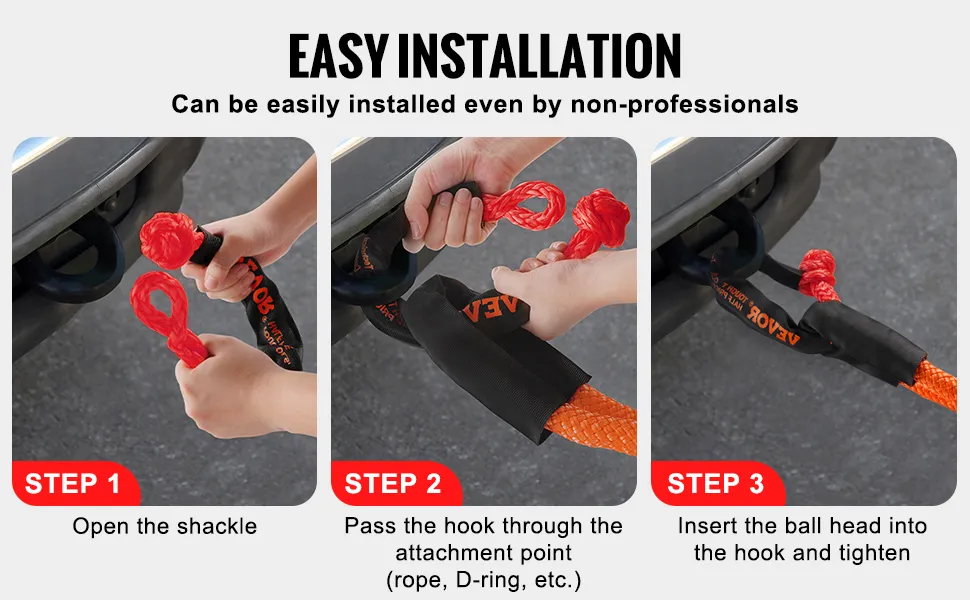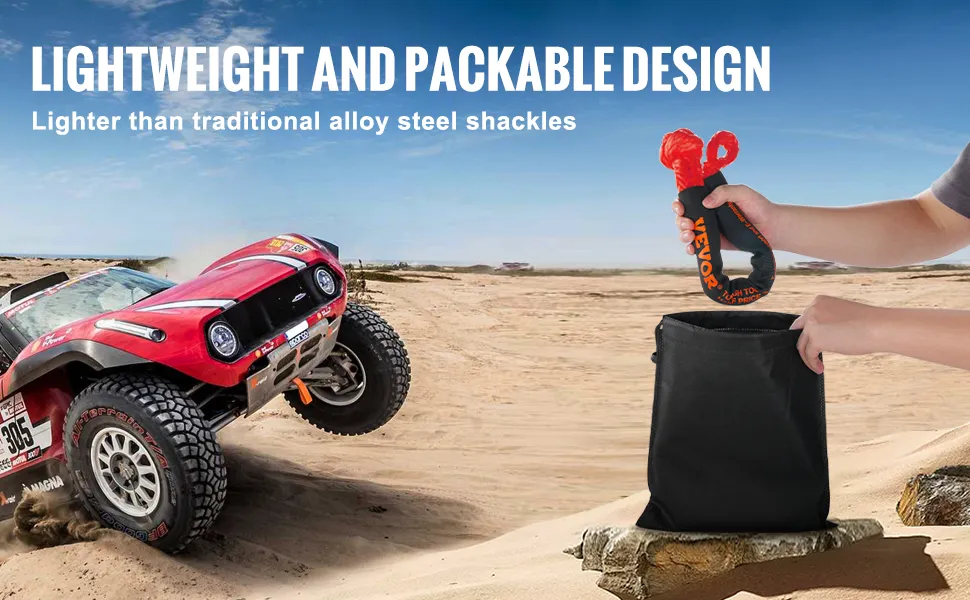 Das Bergungsseil ist unglaublich leicht. Jeder Schäkel wiegt nur 0,66 Pfund. Dadurch lässt es sich leicht tragen und aufbewahren. Sie können es problemlos in die mitgelieferte Aufbewahrungstasche stecken. Seine Tragbarkeit stellt sicher, dass Sie das Seil immer zur Hand haben, wenn Sie es brauchen. Das leichte Design beeinträchtigt seine Festigkeit nicht. Daher bleibt es eine zuverlässige Wahl für jede Abschleppsituation.