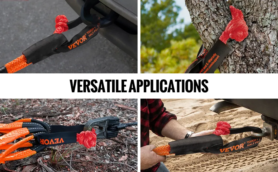 Es ist äußerst vielseitig. Dieses synthetische Bergungsseil mit weichem Schäkel eignet sich perfekt für viele Rettungseinsätze. Sie können es mit Abschleppseilen, Haken und Seilwinden verwenden. Daher ist es ein unschätzbar wertvolles Werkzeug für Offroad-Abenteuer und Notfälle. Die hohe Tragfähigkeit gewährleistet effiziente Rettungseinsätze. Sie können diesem Seil sowohl bei geplanten als auch bei ungeplanten Bergungsaufgaben vertrauen.