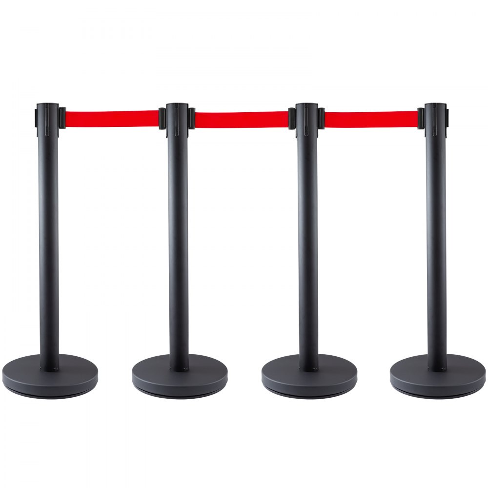 Edelstahl Absperrpfosten Seil Abgrenzungsständer Rotes Seil Schwarze Säule 2m 4 Packung