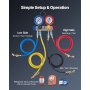 VEVOR Klimaanlagen-Manometer-Set für R22 R404A R410A R12 Kältemittel,4-Wege-Manometer mit 1,5-m-Schläuchen, für Wartung Evakuierung Befüllung Rückgewinnung von Klimaanlagen in Fahrzeugen Haushalten