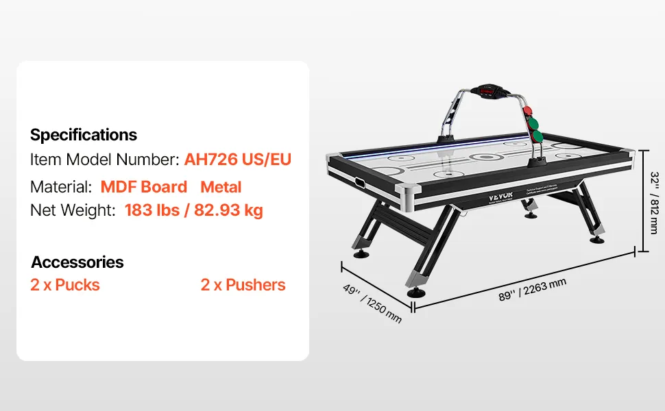 VEVOR luftbetriebener Hockeytisch, Indoor-Hockeytisch für Kinder und Erwachsene, LED-Sporthockeyspiel mit 2 Pucks, 2 Schiebern und elektronischem Punktesystem, Arcade-Gaming-Set für Spielzimmer