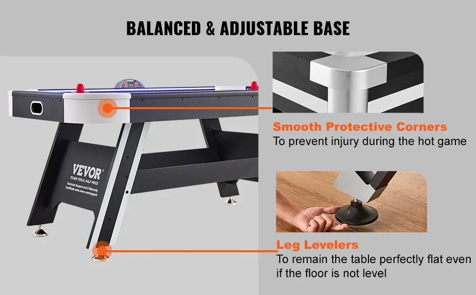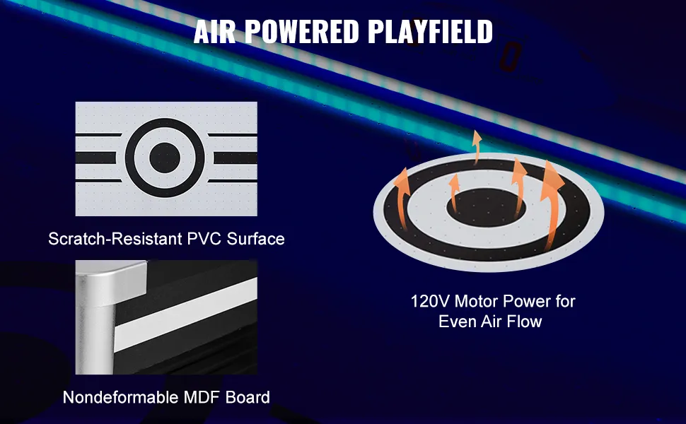 Langlebig: Der luftbetriebene Hockeytisch verfügt über eine kratzfeste PVC-Oberfläche sowie eine atmungsaktive und verwindungssteife MDF-Platte. Er ist aus robusten, langlebigen und korrosionsbeständigen Materialien gefertigt und verspricht unterbrechungsfreie Gaming-Sessions. Die Stahlbeine des Tisches sorgen für zusätzliche Stabilität und Sicherheit bei Ihrem Spielerlebnis