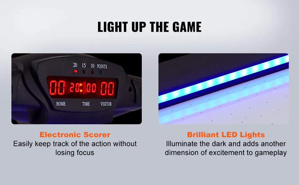 Elektronische Punktezähler: Die Sport-Arcade-Spiele sind mit einer elektronischen LED-Punkteanzeige ausgestattet, die jedes Tor wie eine große Zeremonie erscheinen lässt. Behalten Sie das Geschehen mühelos im Auge, ohne den Fokus zu verlieren, während Sie die elektronische Punktezählerfunktion nutzen