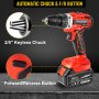 Ein 2/5-Zoll-Ratschenfutter (10,16 mm) verfügt über eine automatische Spindelverriegelung, die eine erhöhte Greiffestigkeit bietet und ein einfaches Wechseln der Bits mit einer Hand ermöglicht. Mit dem Drehschalter können Sie je nach Zweck entweder vorwärts oder rückwärts drehen.
