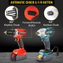 Ein 1 cm Ratschenfutter verfügt über eine automatische Spindelverriegelung, die eine erhöhte Greiffestigkeit bietet und ein einfaches Wechseln der Bits mit einer Hand ermöglicht. Mit dem Drehschalter können Sie je nach Zweck entweder vorwärts oder rückwärts drehen.