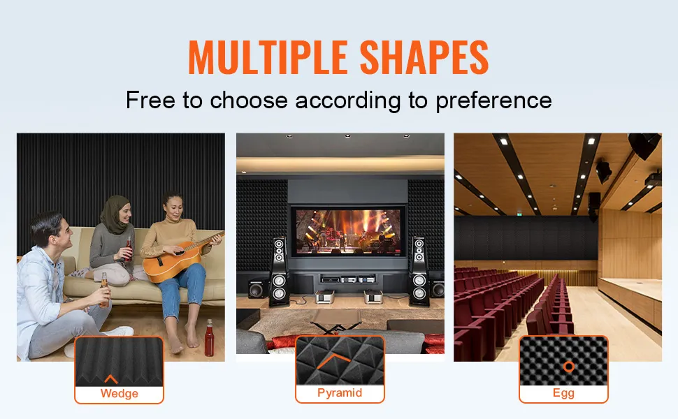 Erhältlich in einzigartigen Keil-, Pyramiden- und Eiformen, sodass Sie je nach Ihrem Platzangebot wählen können. Die strukturierte Oberfläche vergrößert die Fläche des Schaumstoffs und absorbiert Schallwellen effektiv für eine bessere Schalldämmung.