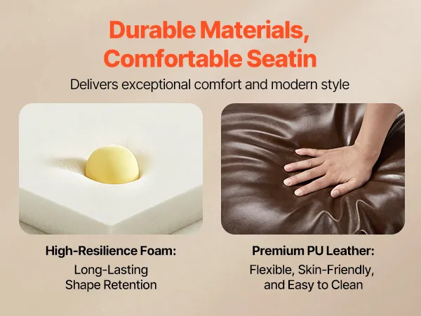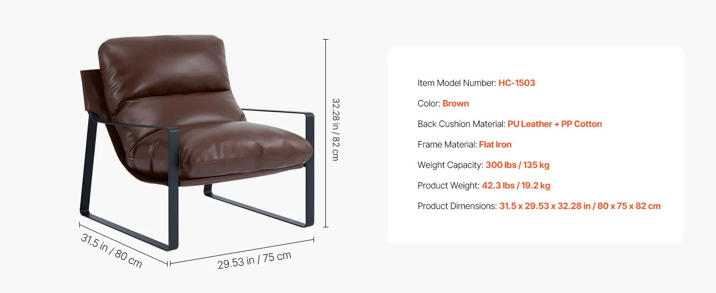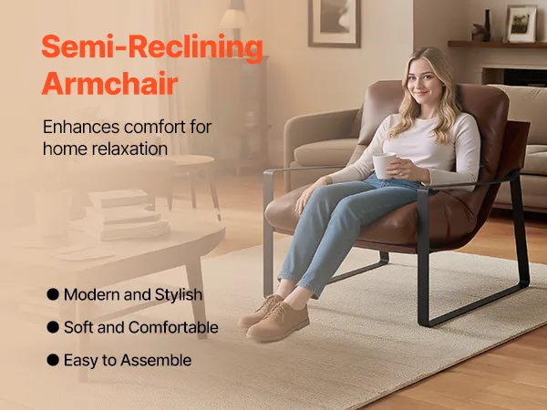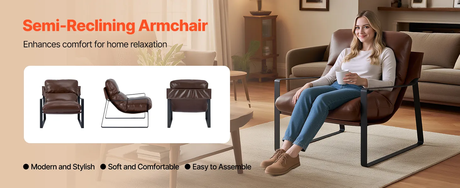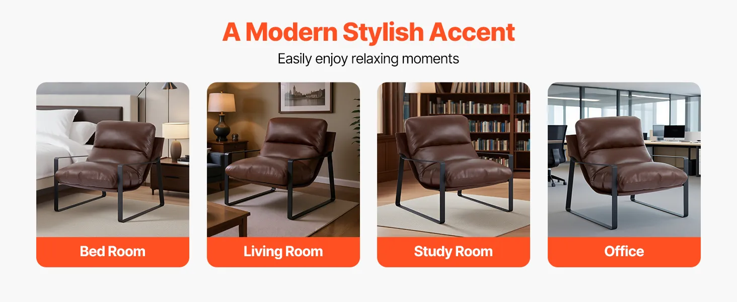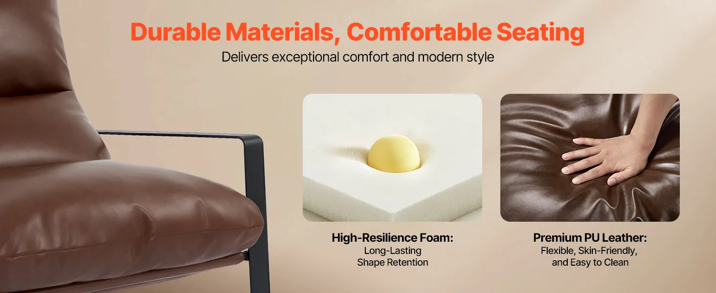 Gefüllt mit hochwertigem, hochdichtem Schaumstoff und mit ergonomischem, halb liegenden Design passen sich Sitz und Rückenlehne den natürlichen Kurven des Körpers an und bieten eine feste Lendenwirbelstütze. Dieser Akzentstuhl ist mit weichem, glattem PU-Leder bezogen und verleiht jedem modernen Raum eine gemütliche Note und einen stilvollen Look.