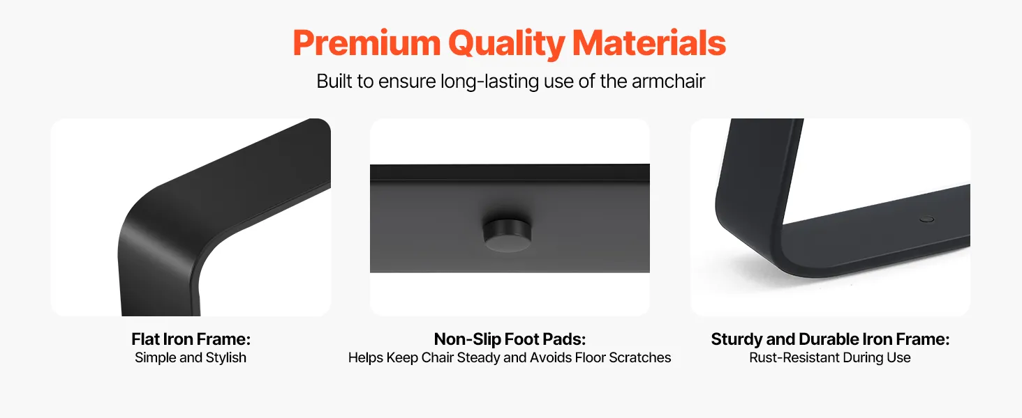 Robuster Rahmen: Dieser moderne Relaxsessel mit seinem schlanken, robusten Eisenrahmen trägt bis zu 300 lbs (135 kg). Die Anti-Rutsch-Pads an den Beinen erhöhen die Stabilität und schützen den Boden vor Kratzern und Rutschen