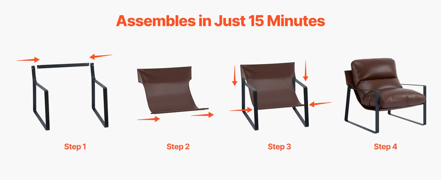 Unser gemütlicher Relaxsessel wird mit allen notwendigen Beschlägen und einer klaren Anleitung für den schnellen Aufbau geliefert. Die Montage dauert nur 15–30 Minuten und erfordert keinen zusätzlichen Aufwand.