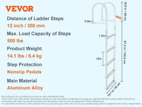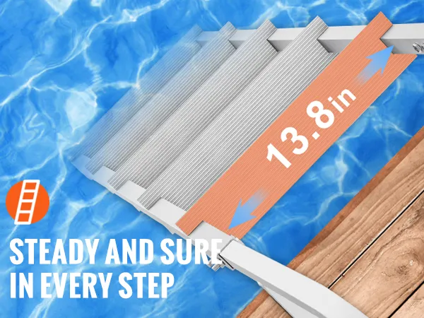 Diese Eigenschaft, kombiniert mit dem leichten Design der Leiter, macht sie zur ersten Wahl für alle, die eine zuverlässige und stabile Dockleiter suchen. Die VEVOR-Dockleiter hat breitere Sprossen als viele Mitbewerber. Dieses Design verbessert die Stabilität und erleichtert das Erklimmen. Die breiteren Stufen bieten eine größere Oberfläche, was besonders für Menschen mit Gleichgewichtsproblemen hilfreich sein kann. Sie bietet auch eine breitere Oberfläche.