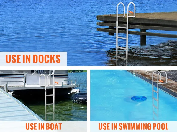 Die VEVOR-Einstiegsleiter ist auf Langlebigkeit ausgelegt. Sie ist aus einer hochwertigen Aluminiumlegierung gefertigt, was sie robust und langlebig macht. Die Leiter kann bis zu 227 kg tragen, was für die meisten Benutzer mehr als ausreichend ist. Diese hohe Tragfähigkeit bedeutet, dass die Leiter starker Beanspruchung standhält, ohne zusammenzubrechen. Die Konstruktion ist so konzipiert, dass sie den Elementen standhält und sich daher für den langfristigen Einsatz im Freien eignet. Egal, ob Sie sie auf einem See, einem Pool oder einem Schiff verwenden, diese Leiter bietet Ihnen jahrelang zuverlässigen Halt.