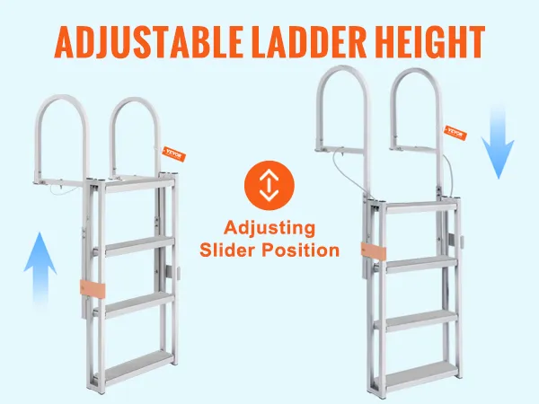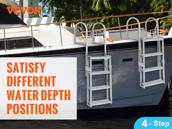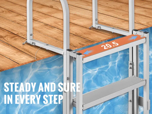 Die einziehbare Dockleiter von VEVOR ist mit einer Einziehfunktion ausgestattet. Bei Nichtgebrauch lässt sie sich dank dieser Funktion leicht hochziehen und verstauen. Sie hält die Leiter aus dem Wasser, verhindert Rost und verlängert ihre Lebensdauer. Der Einziehmechanismus ist einfach und zuverlässig. Daher ist sie für Menschen jeden Alters leicht zu verwenden. Das bedeutet einfaches Einsteigen und sicheren Zugang zum Wasser, egal ob auf Ihrem Pontonboot oder im Pool. Bei der Lagerung nimmt diese Leiter dank ihres kompakten Designs nur minimalen Platz ein und ist somit die ideale Wahl für alle mit begrenztem Lagerraum.