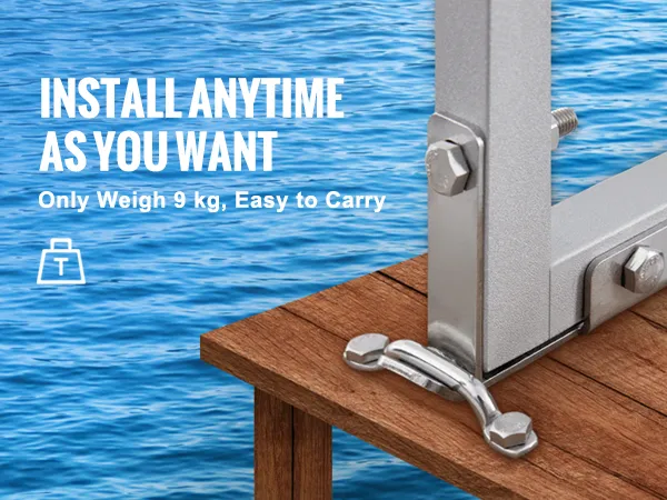 Die VEVOR-Anlegeleiter hat ein kompaktes Design. Sie lässt sich leicht verstauen und transportieren. Im eingefahrenen Zustand nimmt die Leiter nur wenig Platz ein. So lässt sie sich leicht auf Booten oder in Garagen verstauen. Außerdem ist diese Tragbarkeitsfunktion ideal für diejenigen, die ihre Leiter zwischen verschiedenen Orten transportieren. Sie können die Leiter zur saisonalen Lagerung oder zum Transport einfach von ihrer Halterung abnehmen und so sicherstellen, dass sie länger in gutem Zustand bleibt. Dank dieser Bequemlichkeit ist die Leiter für verschiedene Anwendungen geeignet, von privaten Anlegestellen bis hin zu kommerziellen Booten.