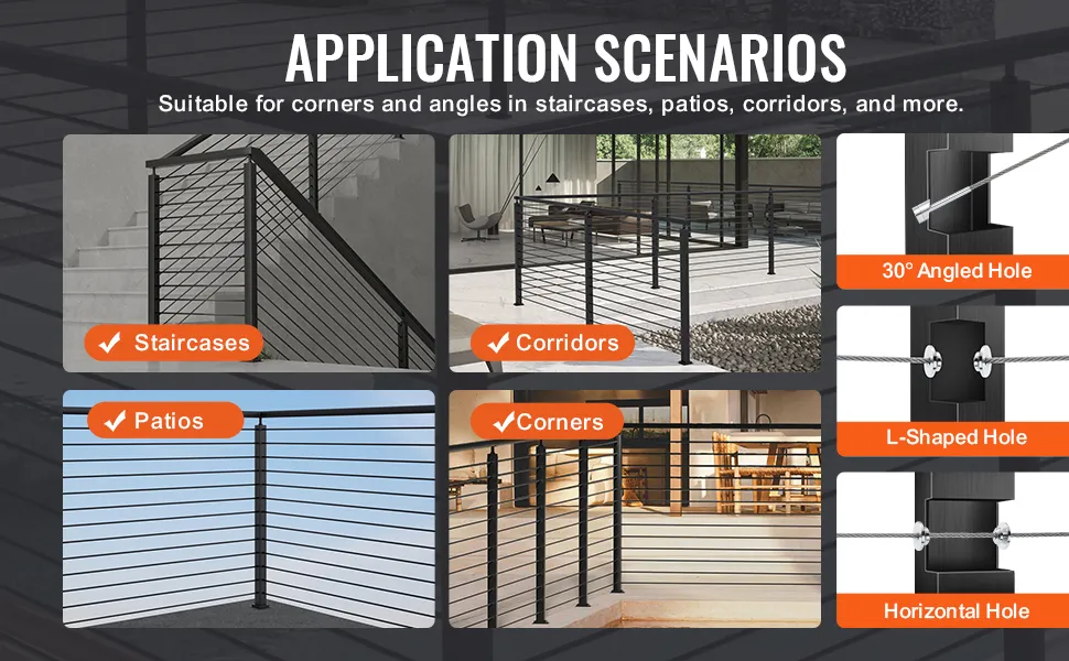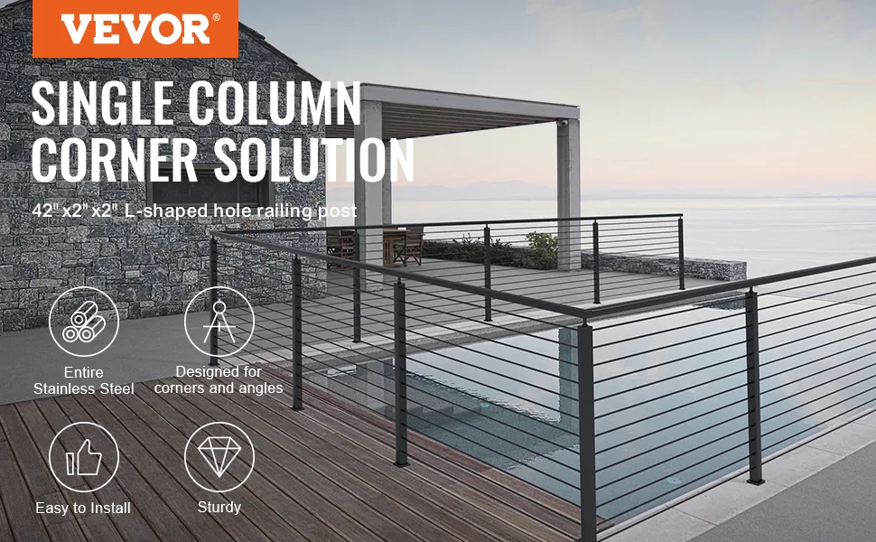 Die VEVOR-Kabelschiene aus Edelstahl ist perfekt für Ecken und Treppen. Ihr L-förmiges Design passt perfekt in diese Bereiche. Die Höhe des Pfostens von 42 Zoll bietet hervorragenden Halt. Er erfüllt die Sicherheitsstandards für verschiedene Anwendungen. Unser Design sorgt dafür, dass er perfekt in Ecken passt. Dies macht ihn zu einer praktischen Wahl für enge Räume. Außerdem ist der Pfosten aufgrund seiner Höhe für Treppen geeignet, da er auch in solchen Bereichen zuverlässigen Halt und Sicherheit bietet. Darüber hinaus verleiht unser L-förmiger Stil Ihrem Raum sowohl Funktionalität als auch Stil. Sie sollten darauf achten, dass Sie Sicherheit und Ästhetik verbessern.