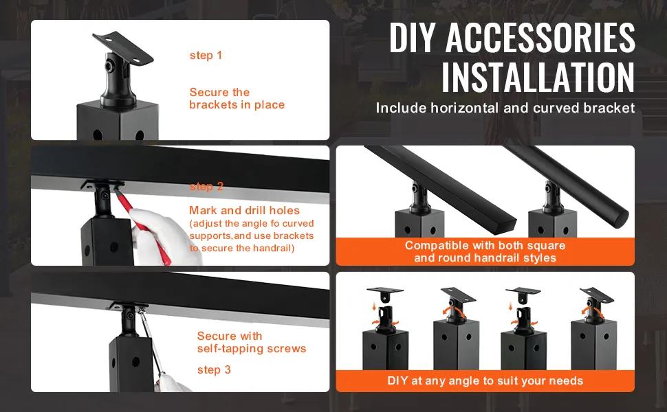 Der Pfosten ist sowohl mit quadratischen als auch mit runden Geländerausführungen kompatibel. Sie können ihn problemlos auf Treppen, Veranden oder Balkonen installieren. Die einfache Installation spart Ihnen Zeit und Mühe und macht den Installationsvorgang schnell und einfach. Es ist eine praktische Wahl für jedes Projekt!