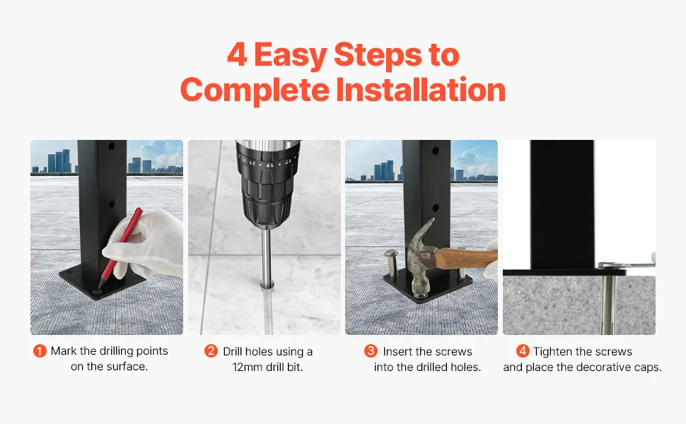 Dieses Treppengeländer ist mit vorgebohrten Löchern ausgestattet, sodass kein zusätzliches Bohren erforderlich ist. Es ermöglicht eine einfache Winkel- und Positionsanpassung während der Montage und enthält sämtliches notwendiges Zubehör, was Arbeitsaufwand spart.