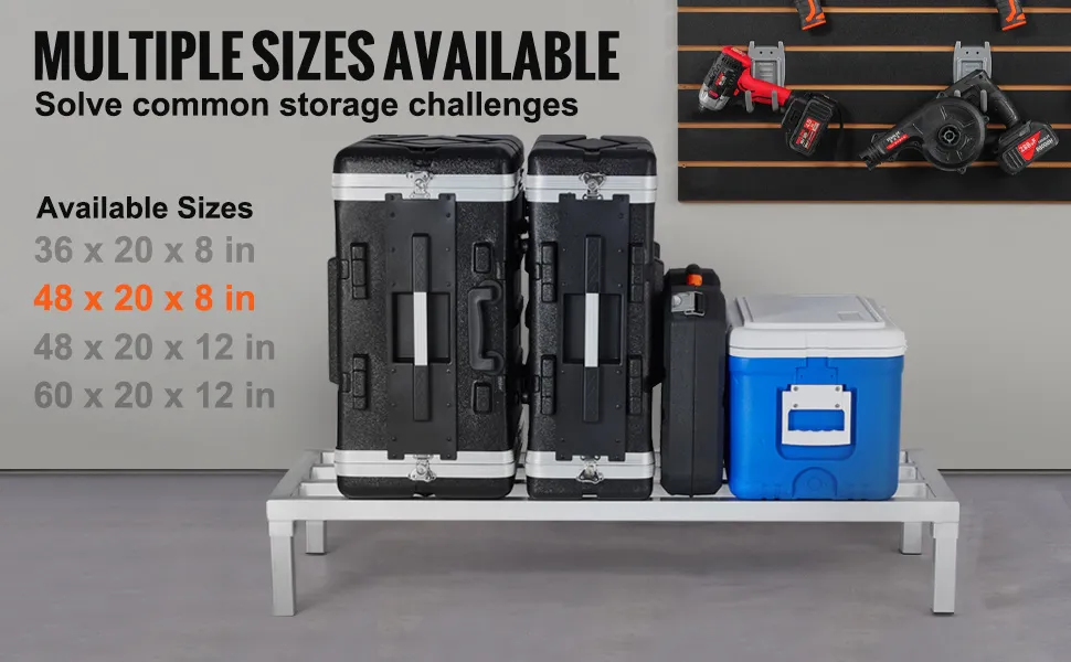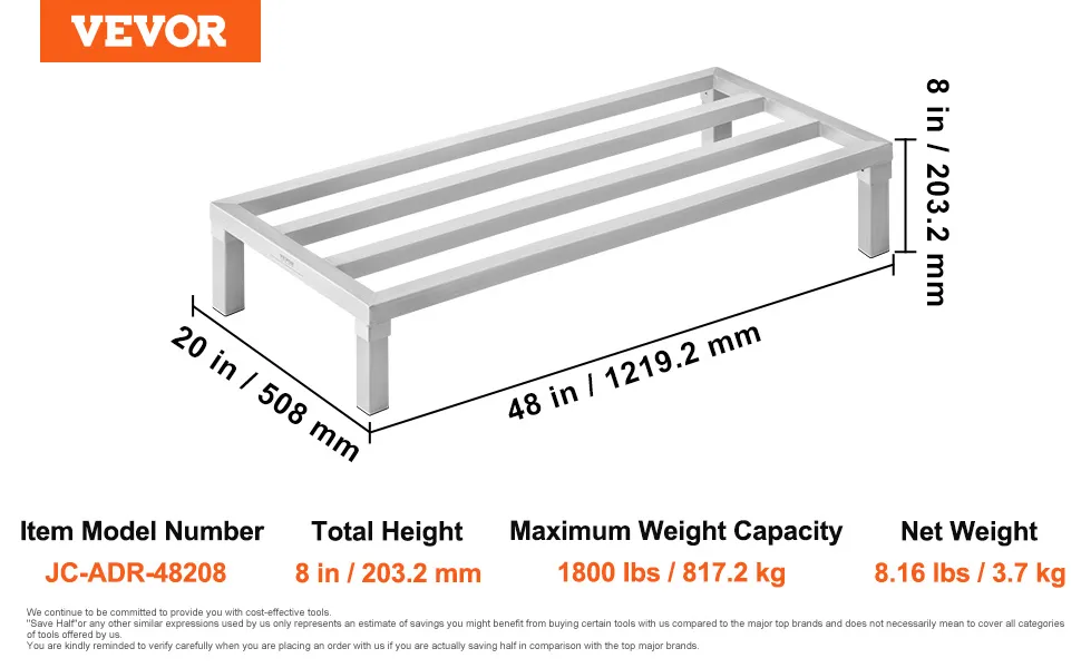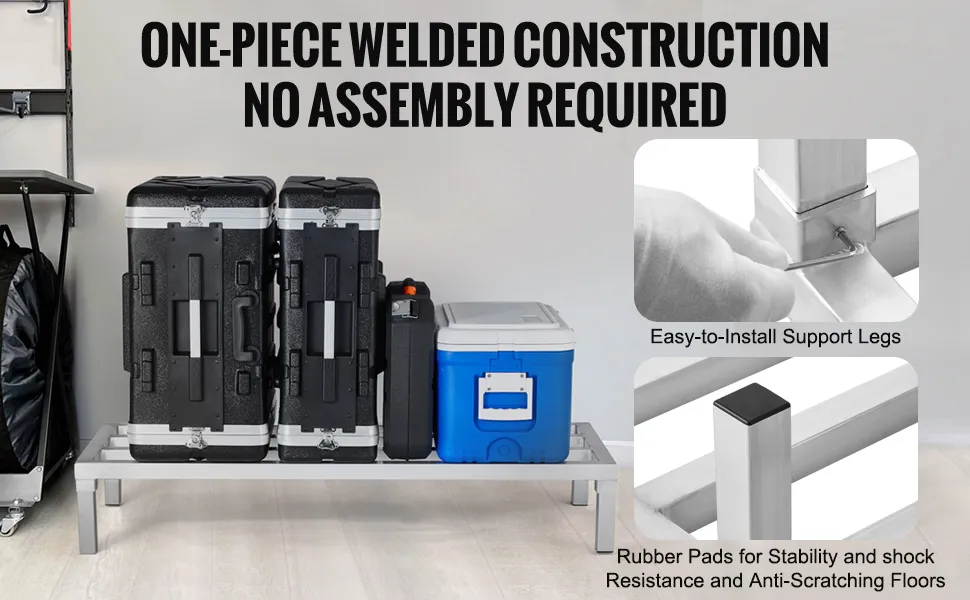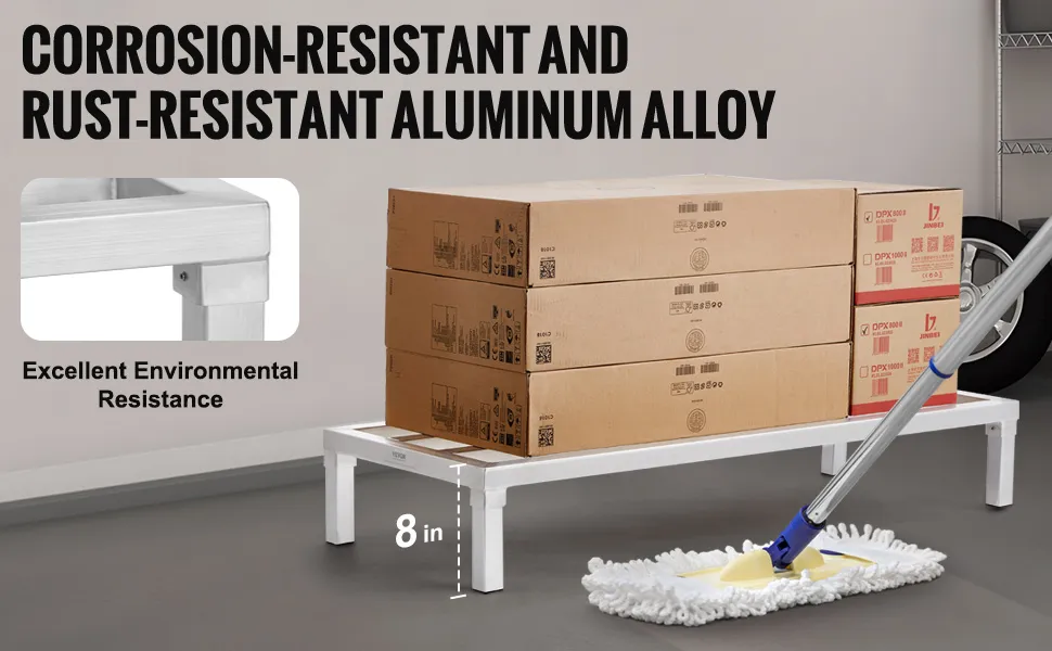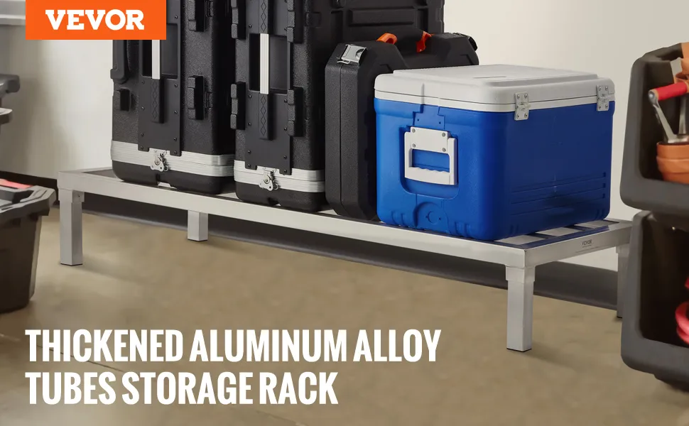 VEVOR Aluminium-Stauregal, 48 x 20 Zoll kommerzielles Bodenregal für Lebensmittel, 8 Zoll über dem Boden, 1800 lbs Tragkraft, komplett verschweißtes Aluminium-Lagerregal, für die Lagerung in Restaurants, Küchen, Garagen und Fahrzeugen