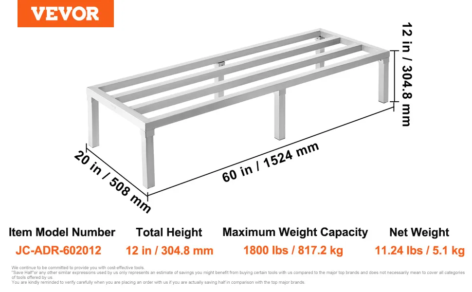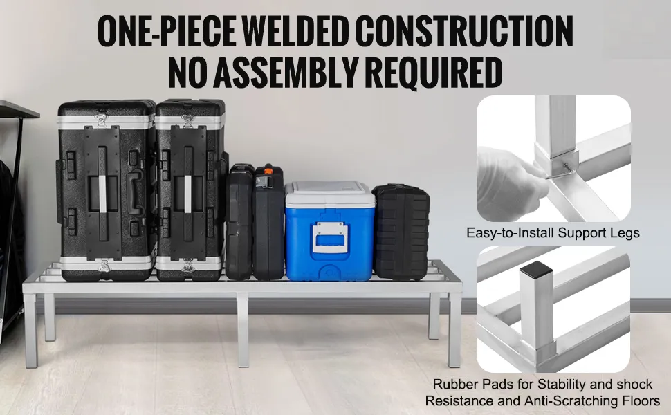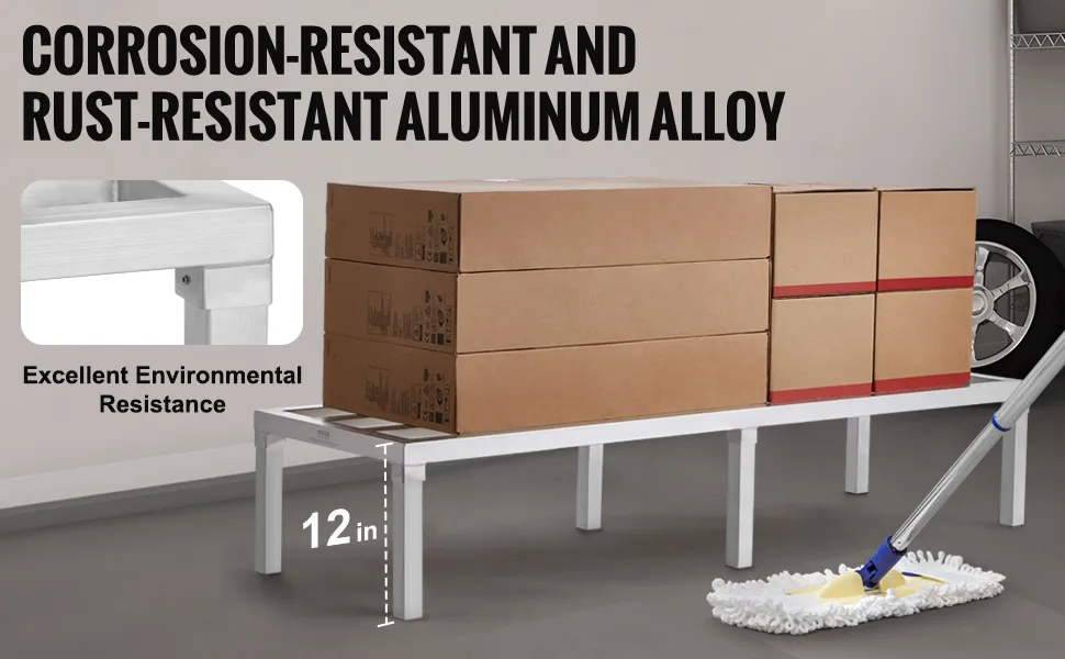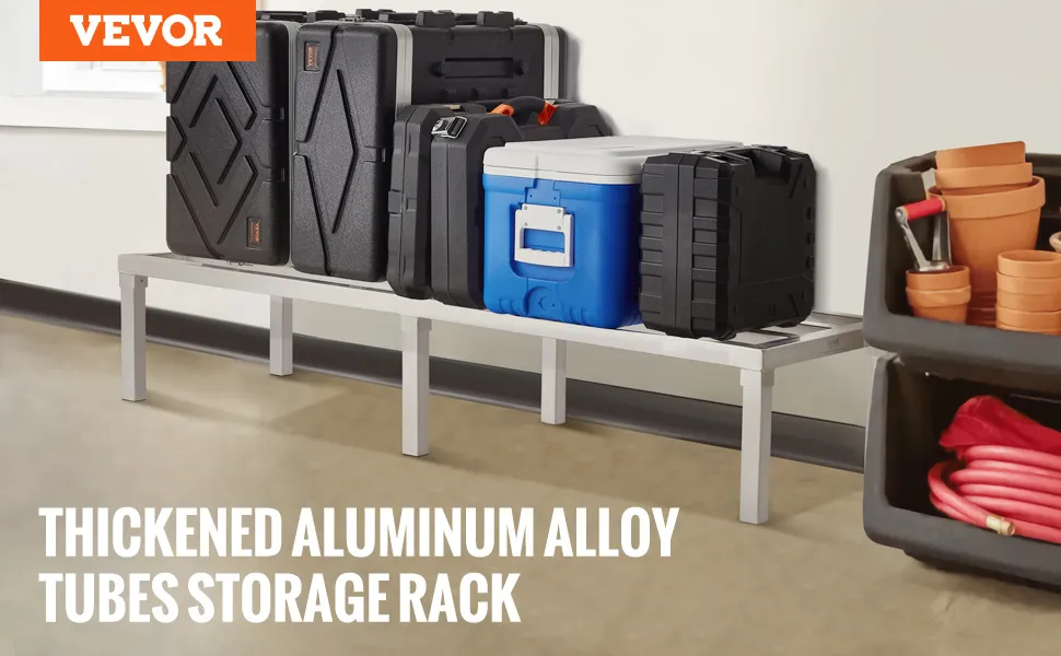 VEVOR Aluminium-Stauregal, 60 x 20 Zoll großes kommerzielles Bodenregal für Lebensmittel, 12 Zoll über dem Boden, 1800 lbs Tragkraft, komplett verschweißtes Aluminium-Lagerregal, zur Lagerung in Restaurants, Küchen, Garagen und Fahrzeugen