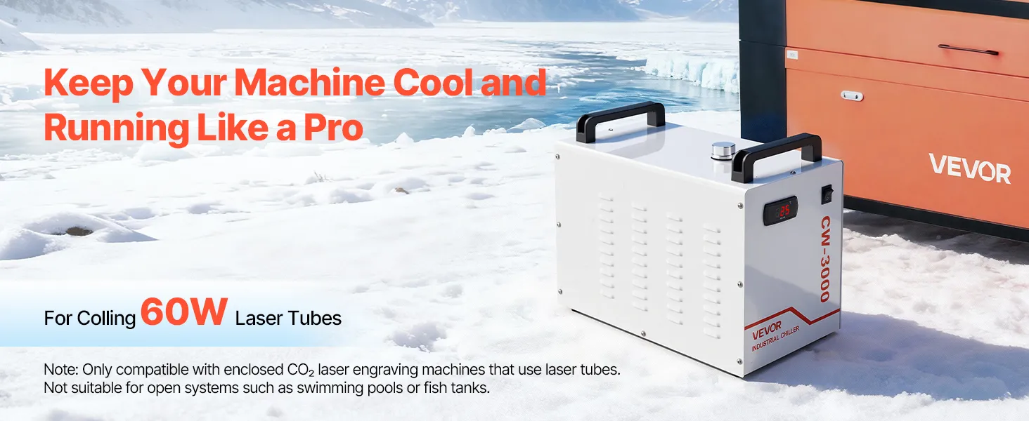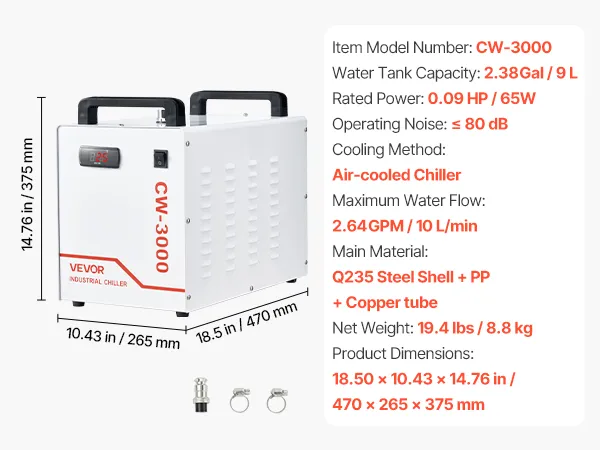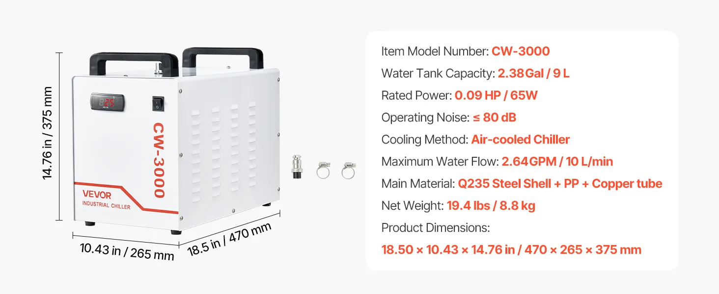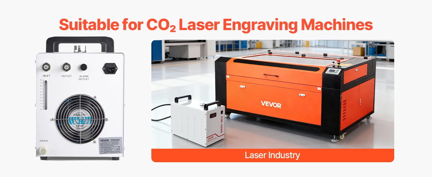 VEVOR Industrieller Wasserkühler CW-3000, Industrie-Wasserkühler-Kühlsystem mit 9-L-Tank, 10 L/min Durchfluss, Kühlgerät mit Hochgeschwindigkeitslüfter, für Lasergravur-&-schneidmaschinen