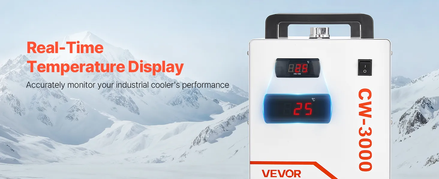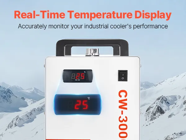 Temperaturanzeige in Echtzeit: Dieser industrielle Wasserkühler verfügt über einen präzisen Temperaturmonitor, der die aktuelle Wassertemperatur auf dem Bildschirm anzeigt. So können Sie den Betriebsstatus genau verfolgen und Ihren Kühlprozess vollständig unter Kontrolle halten