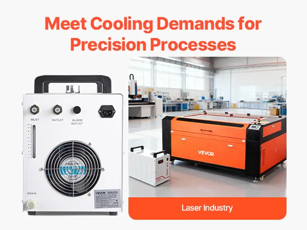 Unsere Industriekühlmaschine verfügt über Standard-Ein- und Auslassöffnungen mit unterschiedlichen Durchmessern und ist mit den meisten Lasergravierern, CNC-Maschinen und anderen Industrieanlagen kompatibel. Sie gewährleistet einen einfachen Anschluss ohne zusätzliche Adapter.
