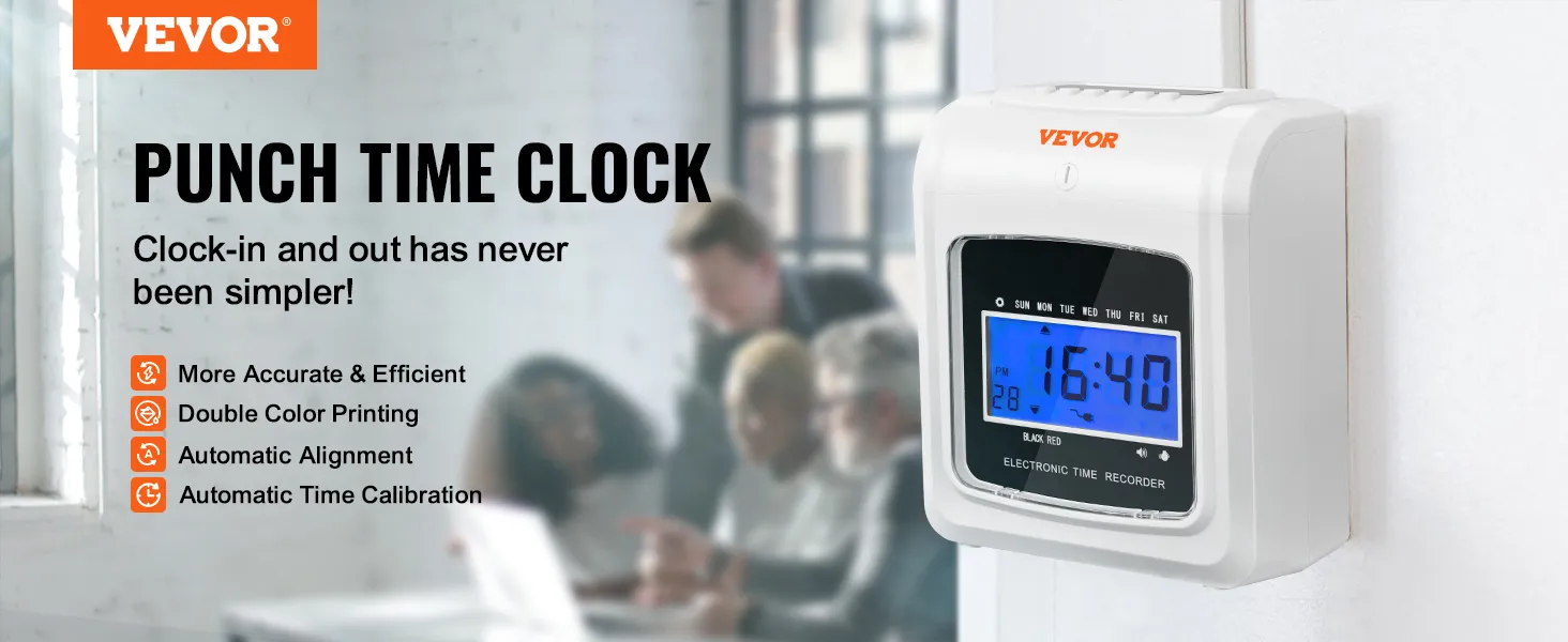 • Übernehmen Sie die Kontrolle über Ihre Arbeitsumgebung mit VEVORs Uhr mit sechs Stempeln pro Tag, die Ein- und Ausstempel präzise berechnet. Die automatische Zuführungs- und Ausrichtungsfunktion richtet die Zeitkarte perfekt aus, um jedes Mal ein genaues Lochen und einen sauberen Druck zu gewährleisten. Die Uhrzeit muss nicht neu eingestellt werden. Vereinfachen Sie die Nachverfolgung und Aufzeichnung der Zeit und Anwesenheit Ihrer Mitarbeiter mit unserer Stechuhr für kleine Unternehmen.