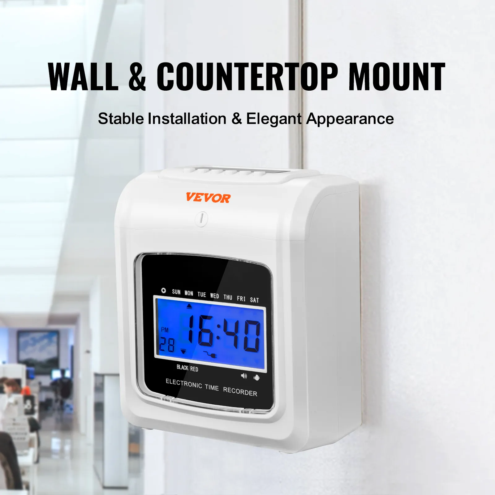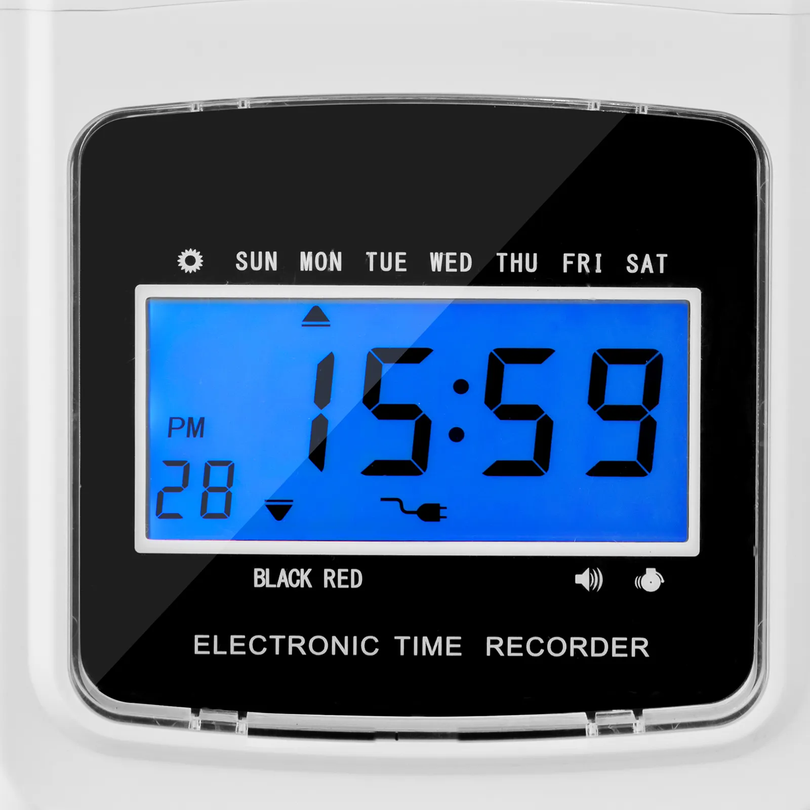 VEVOR Stempeluhr Stechuhr Zeiterfassung 52 Stempelkarten, Elektronisches Stempeluhr inkl. 2 Schlüssel + Farbband, Weiße Elektronische Stechuhr für Kleinbetriebe, Büros, Fabriken, Schulen usw.