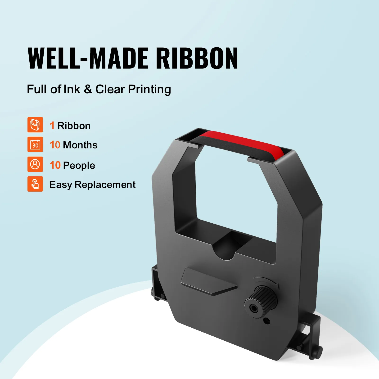 Die Stechuhr für kleine Unternehmen wird mit einem Farbband geliefert, das voller Tinte ist und einen klaren Druck aufweist. Das Farbband kann normal für 10 Personen zum Ein- und Ausstanzen für etwa 10 Monate verwendet werden. Auch der Farbbandwechsel ist mühelos und zeitsparend.