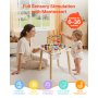 This learning table invites discovery with shapes, textures, and sounds. It encourages hand-eye coordination, sound imitation, visual tracking, and joyful interaction for little explorers ages 6+ months.