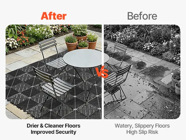 Wasserfest & rutschfest: Diese ineinandergreifende Drainagematte verfügt über ein verbessertes, verdicktes Drainagesystem, das Wasser schnell und effizient ableitet. So wird Oberflächenwasser reduziert, der Bereich bleibt sauber und frisch und Sie genießen sicheren Halt in nassen Zonen