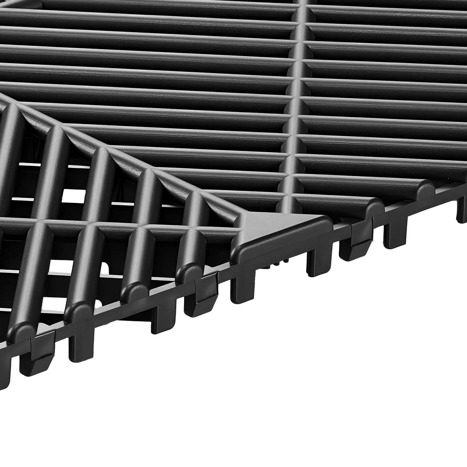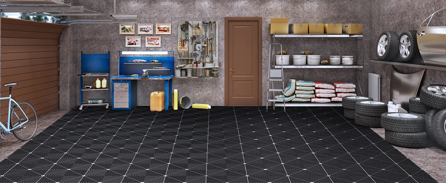 Die ineinandergreifenden Garagenbodenfliesen sorgen für eine feste, stabile Verbindung, reduzieren das Verrutschen und halten die Fliesen fest an ihrem Platz.