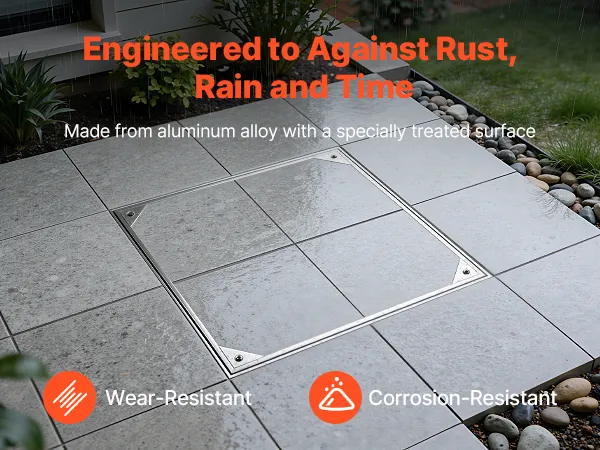 • Für die Ewigkeit gebaut: Hergestellt aus einer Aluminiumlegierung mit eloxierter Oberfläche, bietet diese quadratische Klärgrubenabdeckung Korrosionsbeständigkeit und Verformungsbeständigkeit für erhöhte Langlebigkeit