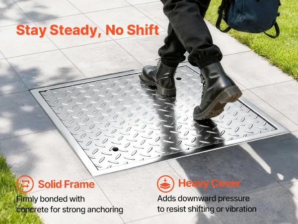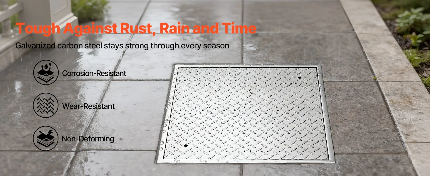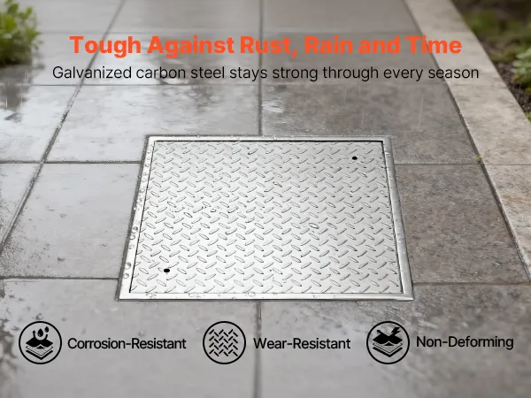 Für Langlebigkeit konzipiert: Dieser quadratische Klärgrubendeckel aus hochfestem Kohlenstoffstahl mit verzinkter Oberfläche bietet Korrosionsbeständigkeit, Verformungsbeständigkeit und erhöhte Haltbarkeit