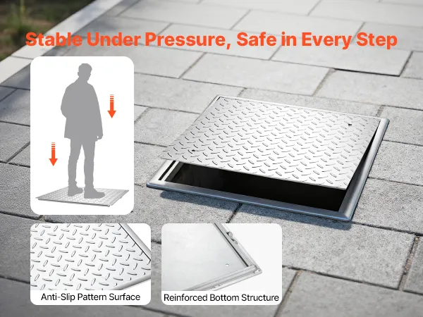 Diese quadratische Schachtabdeckung ist aus robustem Kohlenstoffstahl mit einer verzinkten Beschichtung gefertigt und widersteht Rost, Korrosion und Verschleiß, wodurch sie zuverlässige Leistung und Langlebigkeit bietet.