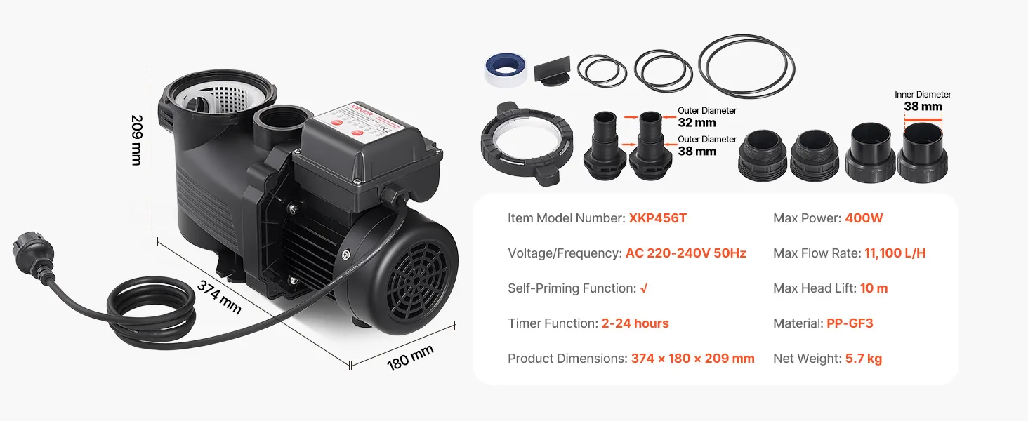 24-Stunden-Timer-Funktion: Die Schwimmbadpumpe unterstützt die automatische Ein-/Ausschaltzeitsteuerung und ermöglicht so den täglichen Betrieb zu voreingestellten Zeiten. Dadurch wird das Wasser mit weniger Aufwand klar gehalten. Unnötig lange Laufzeiten werden vermieden und die Stromkosten gesenkt