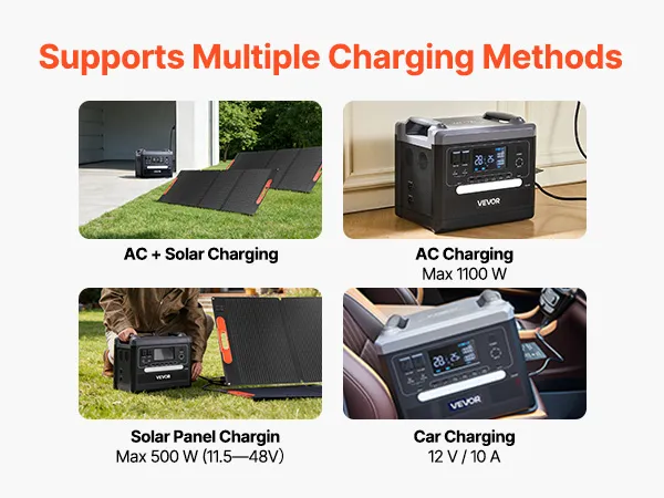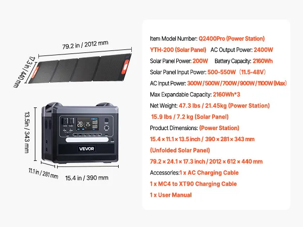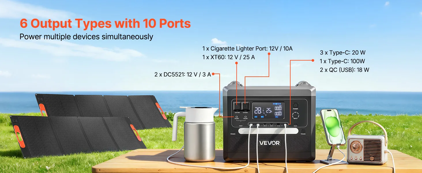 Die tragbare Powerstation VEVOR 2400W mit faltbarem 200W-Solarpanel ist Ihre zuverlässige Stromversorgungslösung. Mit 10 Ausgängen, einem leistungsstarken 2160Wh LiFePO₄-Akku und erweiterbarer Kapazität bietet sie kontinuierliche und zuverlässige Stromversorgung. Ideal für die Notstromversorgung zu Hause, Campingausflüge und Familienurlaube.