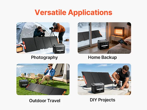 Hocheffizientes Solarpanel: Das mitgelieferte 200-W-Solarpanel nutzt Sonnenlicht effizient und liefert so schnell und sauber Strom für die Powerstation. Zusammenklappbar und leicht zu transportieren – ideal für Camping, Reisen und als Notstromversorgung.