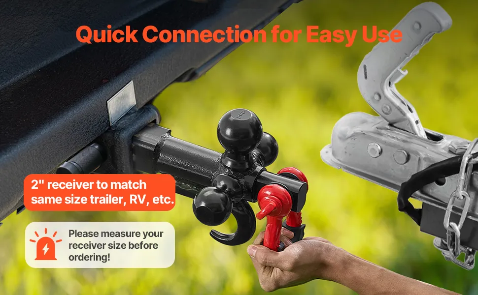 Kompatibel mit verschiedenen Fahrzeugmodellen: Unsere Anhängerkupplung verwendet eine standardmäßige 50-mm-Aufnahme, die perfekt zu Anhängern, Booten, Wohnmobilen, Viehanhängern, Wohnwagenanhängern, Geländefahrzeugen, Geländefahrzeugen, Motorrädern, Heckstoßstangen, landwirtschaftlichen Maschinen und Doppelaufnahmeerweiterungen derselben Größe passt. Bitte bestätigen Sie vor dem Kauf die Kompatibilität der erforderlichen Größe