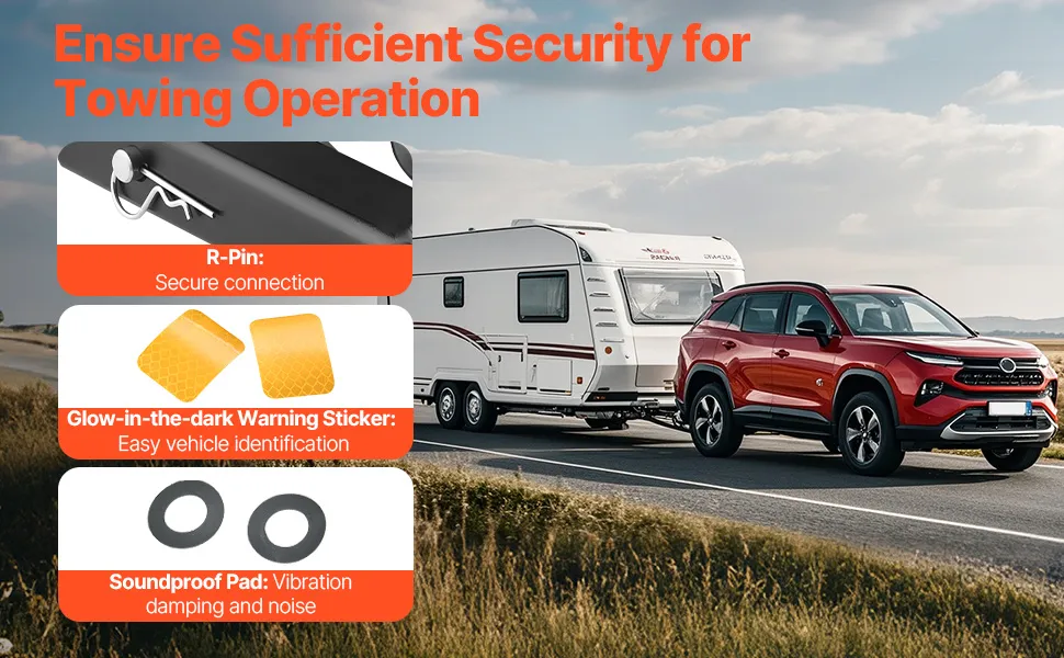 Die Anhängerkupplung eignet sich für verschiedene Abschleppaufgaben mit hoher Intensität, wie zum Beispiel das Ziehen von Anhängern, Booten, Wohnmobilen, Viehanhängern, Wohnmobilen, Geländefahrzeugen, Geländefahrzeugen, Motorrädern usw.