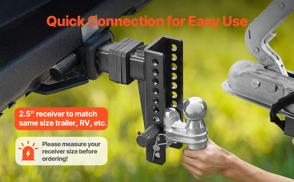 Kompatibel mit verschiedenen Fahrzeugmodellen: Unsere Anhängerkupplung verwendet einen standardmäßigen 2,5-Zoll-/63,5-mm-Empfänger, der perfekt zu Anhängern, Booten, Wohnmobilen, Viehanhängern, Wohnwagenanhängern, Geländefahrzeugen, Geländefahrzeugen, Motorrädern, Heckstoßstangen, landwirtschaftlichen Maschinen und Doppelempfängererweiterungen derselben Größe passt. Bitte bestätigen Sie vor dem Kauf die Kompatibilität der benötigten Größe.